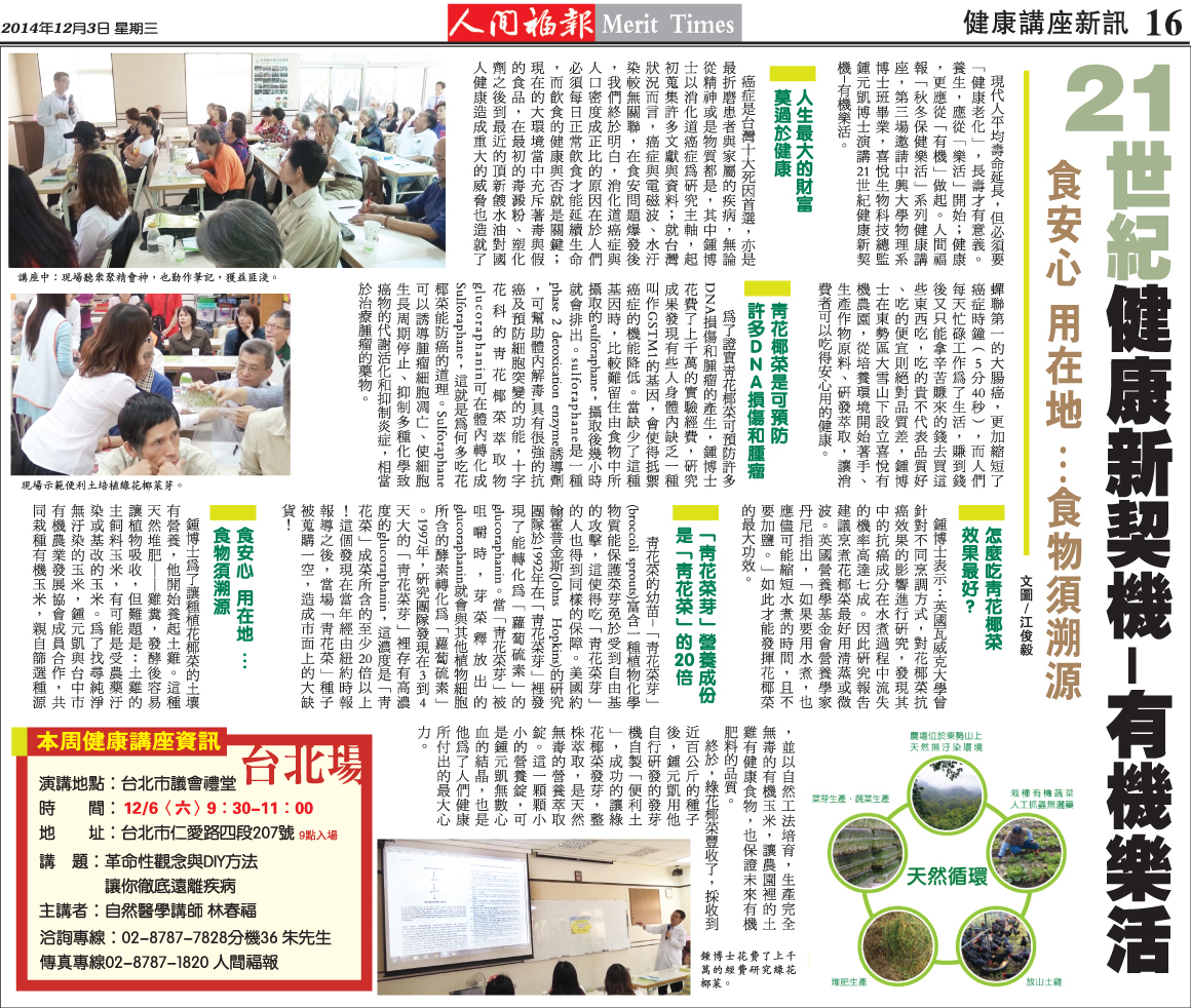 感謝人間福報 於 中華民國104年12月3日報導
